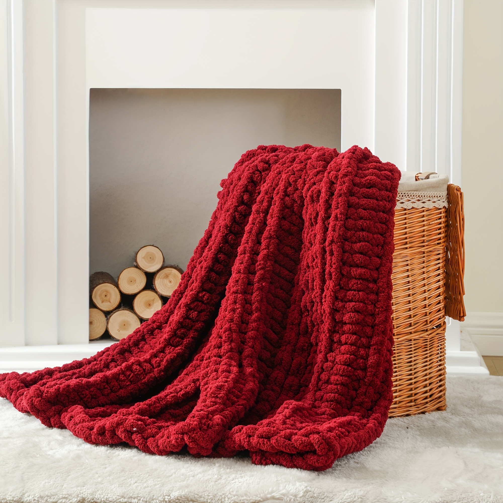 Caramel Rust Chunky Throw Blanket, Handmade Cable Crochet Blanket for Couch, Fall Orange Chenille Blanket Throw for Fall Decor, Super Soft Thick Textured Blankets, 50\